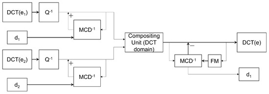 - Chang, S.F.; Messerschmitt, D.G. A new approach to decoding and compositing motion-compensated DCT-based images. In Proceedings of the 1993 IEEE International Conference on Acoustics, Speech, and Signal Processing, Minneapolis, MN, USA, 27–30 April 1993; IEEE: New York, NY, USA, 1993; Volume 5, pp. 421–424. [Google Scholar]