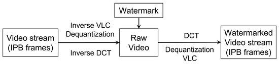 - Mansouri, A.; Aznaveh, A.M.; Torkamani-Azar, F.; Kurugollu, F. A low complexity video watermarking in H.264 compressed domain. IEEE Trans. Inf. Forensics Secur. 2010, 5, 649–657. [Google Scholar] [CrossRef]