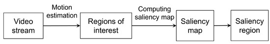 - Fang, Y.; Lin, W.; Chen, Z.; Tsai, C.M.; Lin, C.W. A video saliency detection model in compressed domain. IEEE Trans. Circuits Syst. Video Technol. 2014, 24, 27–38. [Google Scholar] [CrossRef]