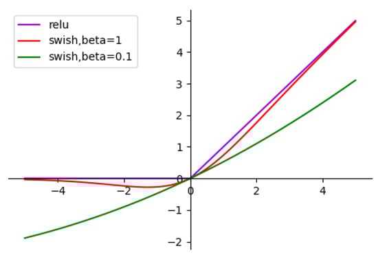 The images of the two functions are shown in Figure 3. Both functions have lower bounds but no upper bounds. Several experimental results show that the swish function has better performance than the relu function, because the swish function makes up for the shortcomings of relu and can alleviate the problem of gradient explosion.