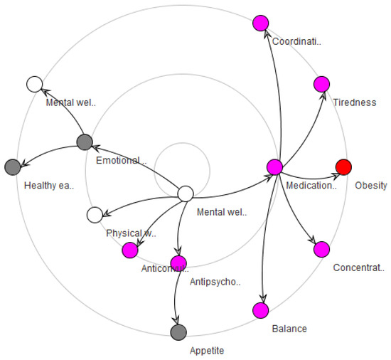 - A pathway tool (Figure 6) to find the multiple pathways connecting two factors. For example, one may ask “I promote a policy against bullying, and I am interested in the outcome on well-being. What is between them?”;