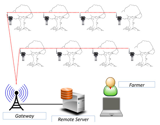 The application of data-processing algorithms on collected data can create opportunities for the development of further innovations and data-driven services, such as decision-making applications that can be combined with IoT actuators to act on physical objects (e.g., turning on a water pump) with minimal or no farmer intervention. However, sensor integration into industrial-scale frameworks requires a large volume of constrained sensor devices, resulting in a self-contained network known as a wireless sensor network (WSN) [2,3,4,5,6,7]. Despite the existence of these technologies and services, they are not always deployed.
