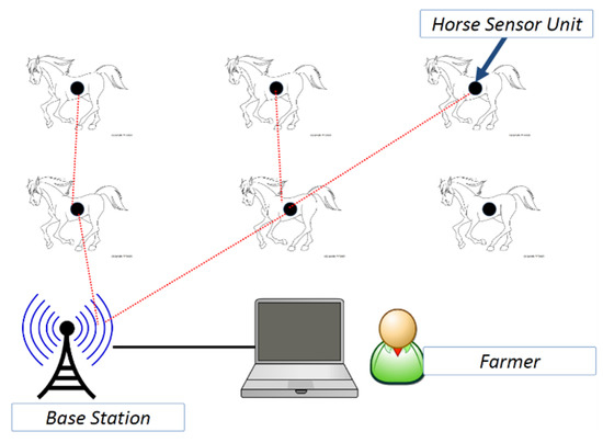 In WSNs, four constrained elements are used to organize the internal structure of any sensor device: (1) sensing element (such as a horse heartbeat signal sensor); (2) limited computation power (e.g., main memory and central processing unit (CPU)); (3) short-distance, limited-bandwidth radio transceiver; and (4) limited battery power. These constraints make it challenging to integrate such a sensor network into the agriculture sector, in terms of meeting the scalability and performance requirements of the harsh environments of agricultural farms [8,9,10].