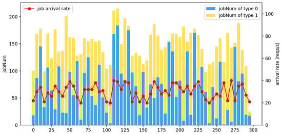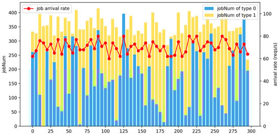 As shown in Figure 11, the job arrival rate for the high-frequency workload model was randomly generated in the range of [60, 80] with a mean of 70.32% and a standard deviation of 5.57%.