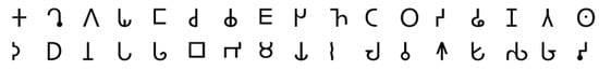- The proto-Elamite script existed primarily in the region that today is Iran during the fourth millennium BCE [13]. The proto-Elamite script had almost two thousand signs, but most of those signs were used infrequently [14]. Currently, the proto-Elamite script is currently undeciphered. We used 17 signs from the proto-Elamite script, as shown in Figure 8.