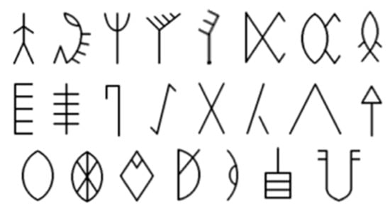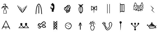 - Sumerian pictograms were a novel development and were mostly logographic, according to researchers. They were formed in the fourth millennium BCE, but they developed into cuneiform signs, which were used over several millennia until the first century [15]. The Sumerian language is distantly related to the Dravidian and Uralic languages [16,17]. We used 34 signs from the Sumerian pictograms, as shown in Figure 9.