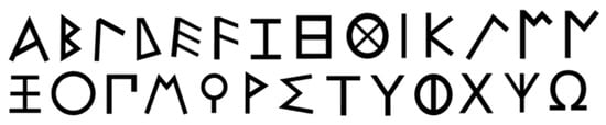 - Revesz, P.Z. Bioinformatics evolutionary tree algorithms reveal the history of the Cretan Script Family. Int. J. Appl. Math. Inform. 2016, 10, 67–76. [Google Scholar]