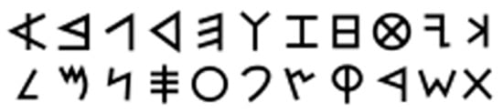 Figure 7. The 22 Phoenician alphabet letters used in this study.