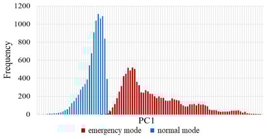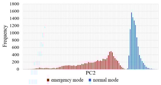The resulting generalized feature (Figure 7) makes it possible to implement a classifier whose error does not exceed 0.25% of the size of the training sample. The considered example shows that the formation of the initial sample projections on the axes, which provide the greatest dispersion, is expedient for data classification. This allows you to reduce the number of coordinates, while maintaining informativeness. The PCA method is designed to obtain such projections and is applicable for feature space compression [45].