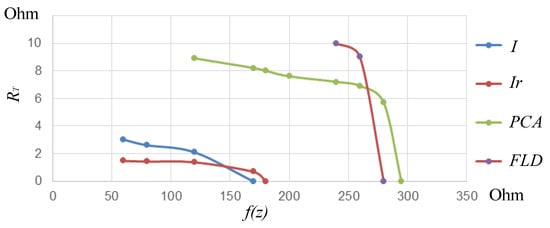Similar to the PCA method, linear discriminant analysis (LDA) [39,40,59] makes it possible to single out a subspace of a lower dimension in the initial feature space.