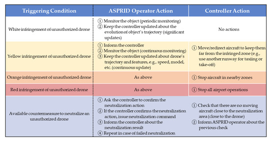 - ASPRID’s operational procedure, which specifies the step-by-step instructions for the operators to accomplish the management of drone intrusions.
