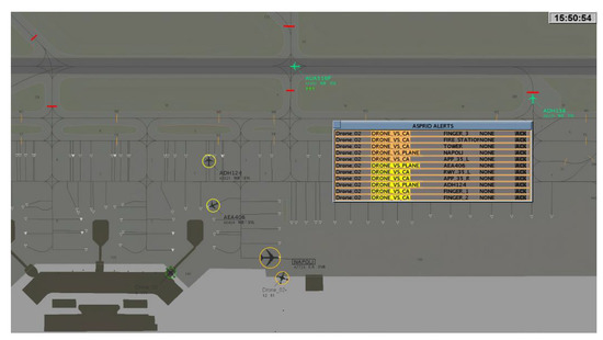 The designed procedure stops airport operations only if a red-zone infringement occurs. Moreover, the procedure also implicitly considers aircraft restoring: in case of a downgrade of the alert level (e.g., in case of an unauthorized drone’s transition from orange to yellow infringement or from red to orange infringement), the controller performs the specific actions for the new alert level, which possibly implies a restoring of some aircraft previously stopped, according to their position with respect to the infringement zone. Instead, the procedure does not currently consider the restoration times due to the possible removal of the neutralized drone within the airport’s perimeter.
