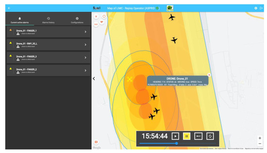 - Red level—The drone is within the safety radius, it physically interferes with the asset’s operations, and the collision between the drone and the asset is imminent. The asset operates in suspended mode, i.e., it requires a shutdown for its operations. Interdependent assets or the full airport may also require a shutdown.