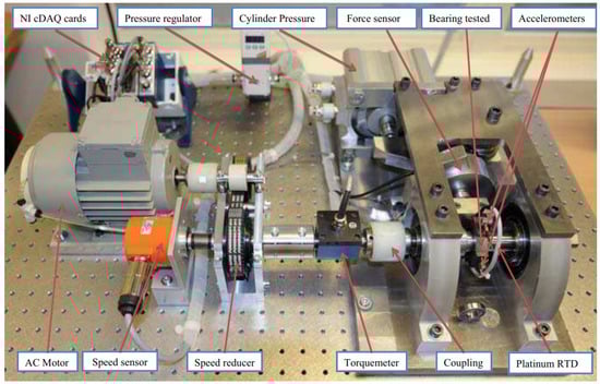 - Nectoux, P.; Gouriveau, R.; Medjaher, K.; Ramasso, E.; Chebel-Morello, B.; Zerhouni, N.; Varnier, C. PRONOSTIA: An experimental platform for bearings accelerated degradation tests. In Proceedings of the IEEE International Conference on Prognostics and Health Management, PHM’12, Montreal, QC, Canada, 5–7 July 2012; pp. 1–8. [Google Scholar]