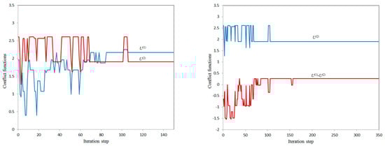 In this paper, we considered only the “negative” impacts of the participants in the conflict situation on each other, i.e., such influences that lead to new conflicts leading to an increase in the conflict level . However, in a real situation, along with “negative” influences, there can be “positive” influences of opponents on each other, which lead to a decrease in the conflict level . For example, a participant in a conflict situation can compensate for the conflicts they created by doing something pleasant for the opponent. So, a parent can make some nice gift, a surprise for a child (tangible or intangible), and a child can do something nice for a parent (wash the dishes, clean their room, etc.). The result of such actions can be called “negative conflict”, i.e., an action that reduces the conflict level. In this case, the dissatisfaction function can be written as the following: