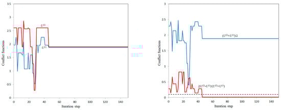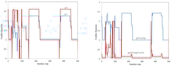 When considering this conflict situation, we can either fix the parameters or , for example, by setting and and thus by setting the initial conflicts (corresponding to a situation where both parties will under no circumstances agree to change their positions; for example, if the significance of this conflict for the corresponding party significantly exceeds the significance of all other conflicts) or consider these parameters as variables.