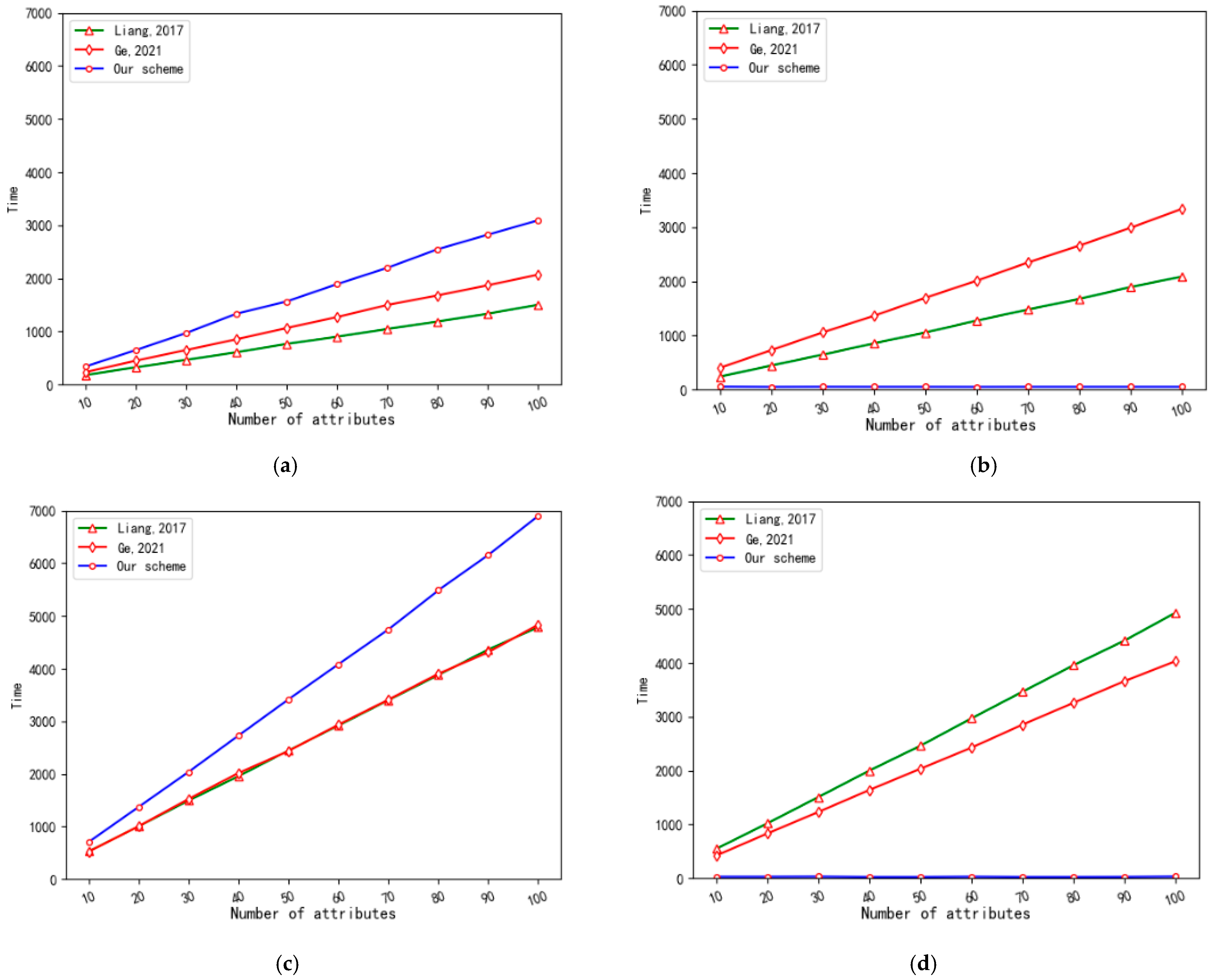- Lai, J.; Deng, R.H.; Guan, C.; Weng, J. Attribute-Based Encryption with Verifiable Outsourced Decryption. IEEE Trans. Inf. Forensics Secur. 2013, 8, 1343–1354. [Google Scholar]