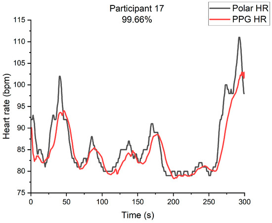 Participant 17’s heart rate of PPG and heart rate band.