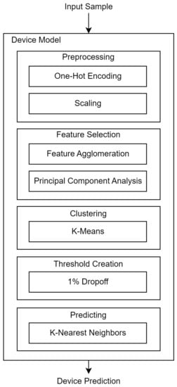 The unsupervised process detailed in this paper utilizes an ensemble-based approach to device identification, where each base model that comprises the ensemble network is a one-class classifier. Figure 1 details the various steps that comprise the one-class classifiers implemented in this paper. These steps will be discussed more thoroughly later in this section.