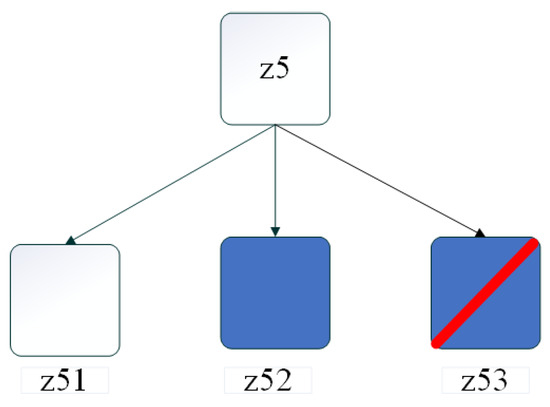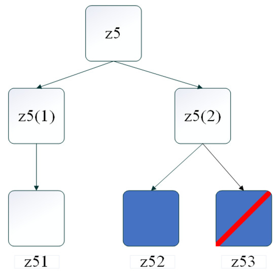 The class includes five subclasses (Figure 4). Subclasses and can be separated from the others with red along the contour. Subclass differs from subclass in the number of pixels in red. Node is a leaf. If a road sign is assigned to this class, then the recognition problem is solved. Class includes 32 traffic signs. These signs have a different image of black on a white background. Classes and are highlighted by the presence of an area of blue. Class z44 is separated from class by a red stripe. Class includes nine traffic signs. Seven traffic signs in this class contain images of numbers. Class includes 18 traffic signs. These traffic signs contain a white image on a blue background.