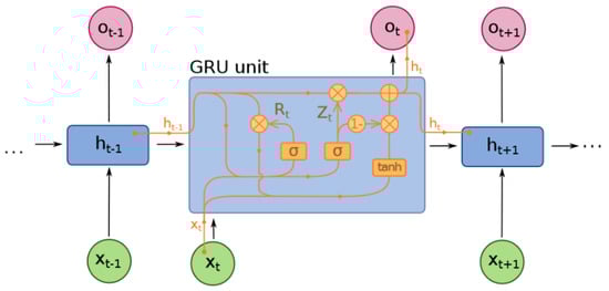 GRUs are a type of RNN architecture that were first proposed by Cho et al. in 2014 [63]. They are similar to LSTMs in that they are designed to overcome the vanishing gradient problem, but they are simpler and more computationally efficient than LSTMs. Like LSTMs, GRUs also have a gating mechanism that allows them to selectively retain or discard information as it flows through the network. However, GRUs only have two gates (an update gate and a reset gate) compared to LSTMs’ three gates (input, output, and forget gates).
