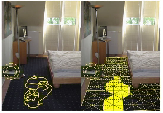 Example of a SensFloor® detecting a person’s fall and the user’s position [67].