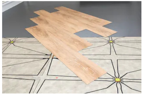 SensFloor®, by FutureShape, is a large area sensor floor, that can be installed beneath all kinds of flooring, making it invisible (Figure 6) and non-intrusive. It is made of a 3 mm thick underlay with capacitive sensor arrays that can detect people and conductive materials. This system, created by Future-Shape GmbH, is based on large-area capacitive sensor technology, which provides high spatial resolution and sensitivity (Figure 7). It is also incredibly flexible because it is made up of separate modules that can be combined in a variety of scenarios.