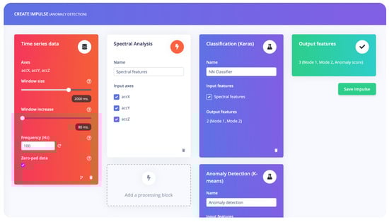 Block 3 reveals the software components responsible for data handling and pre-processing. Within this block, the Node.js application plays a key role by incorporating a pre-processing mechanism specifically designed to address potential false positives that may arise during the training process. This mechanism operates by analyzing the distance between new and previous data points, automatically discarding any data points that exceed a predefined threshold. By implementing this approach, the Node.js application ensures the reliability and accuracy of the training data. Moreover, the Node.js application facilitates the seamless transfer of data to the database, streamlining the storage of pre-processed data for further analysis. As part of the pre-processing stage, a separate Python script retrieves the data from the database to apply machine learning algorithms. Currently, this Python software operates on a dedicated machine. It conducts essential pre-processing tasks on the data from the IMU, such as calculating the average, minimum, maximum, root-mean-square, and standard deviation. These calculated features are crucial for the subsequent classification performed by our models also included in this Python script.