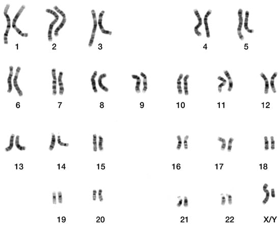 - Tjio, J.H.; Levan, A. The Chromosome Number in Man. Hereditas 2010, 42, 1–6. [Google Scholar] [CrossRef]