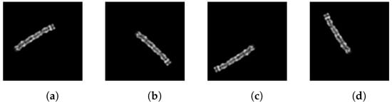 Chromosome images rotated clockwise by (a) 60°, (b) 135°, (c) 240°, (d) 330° and horizontally and vertically randomly shifted.