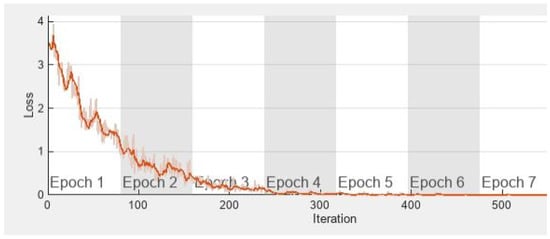 We added the learning curve (see Figure 14) of the baseline network (i.e., without data augmentation), which obtains zero loss error, so it perfectly classifies the training after a few training epochs; clearly, the CNN is likely to overfit the training data, so it is important to increase the size of the training ensemble to reduce the risk of overfitting.