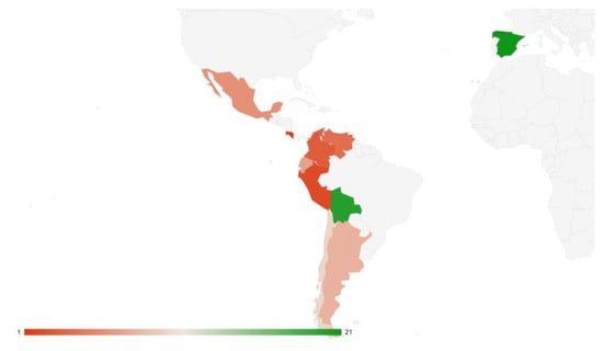 Based on data extracted from the WHO, these ten Ibero-American countries total 11,501 infected as of the date of consultation for this study, 14 September 2022. Spain has 6947 cumulative cases and 2 deceased cases, followed by Peru with 1937 infected, Colombia with 938, Mexico with 788, Chile with 486, Argentina with 221, Bolivia with 110, Ecuador with 68 cases and 1 deceased, and Costa Rica and Venezuela with 3 infected cases, respectively. In the US, for example, 19,833 cases had already been detected on the same date.