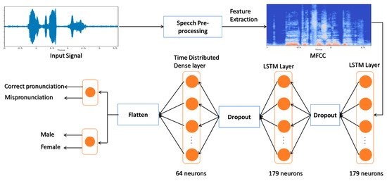 - A two-stage diagnostic system for recognizing the mispronunciation of Arabic letters using MFCC features and the LSTM model was implemented.