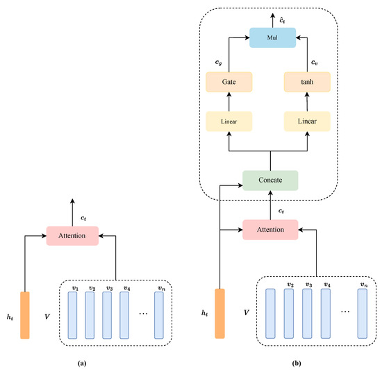 - Lu, J.; Xiong, C.; Parikh, D.; Socher, R. Knowing when to look: Adaptive attention via a visual sentinel for image captioning. In Proceedings of the 2017 The IEEE Conference on Computer Vision and Pattern Recognition, Honolulu, HI, USA, 21–26 July 2017; pp. 375–383. [Google Scholar]