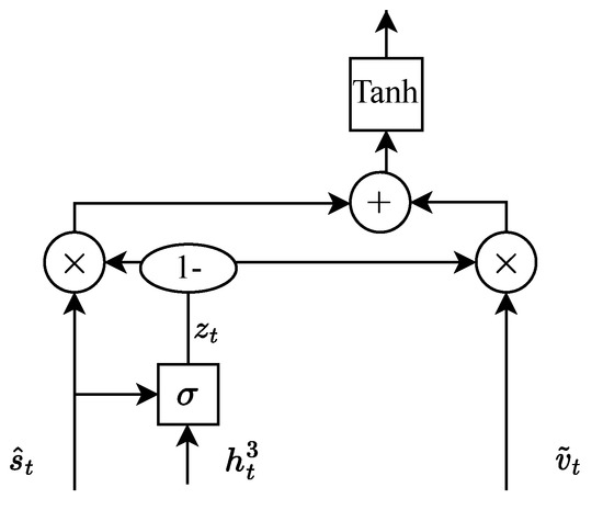 Subsequently, the vector combined with computes a gate vector via a linear transformation and gate mechanism. Meanwhile, this vector is transformed as another vector via another linear and nonlinear transformation . Finally, AA operates on and to get . These operations are formulated as follows: