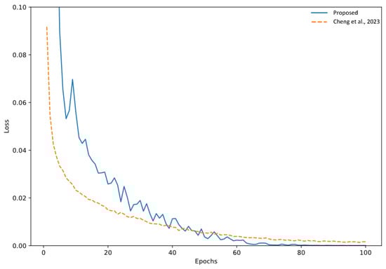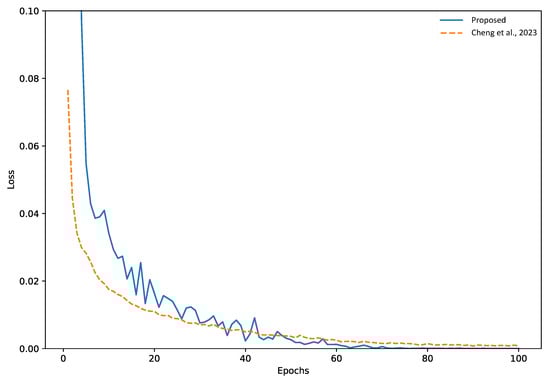 After the acceleration procedure the trend of loss values of the training process is improved more as shown in Figure 4, Figure 5 and Figure 6. In Figure 4, Figure 5 and Figure 6, the trend of loss values of the training process of InceptionResNetV2, InceptionV3, and MobileNetV2 models are all compared with the previous training convergence results using only the TL architecture, respectively. From the results, the convergence process is more stable using only the TL architecture. In contrast, the SOL architecture oscillates more in the convergence process. This is because TL and CCEL sum the loss value of SOL. In the convergence process, the two losses affect each other, and the loss value becomes smaller and smaller, making the loss value oscillate more obviously. However, the overall loss value is still decreasing. Table 4 compares model loss after 100 epochs of training. Table 4 shows that the loss of SOL architecture is lower than that of TL architecture when the model is trained after 100 training epochs.