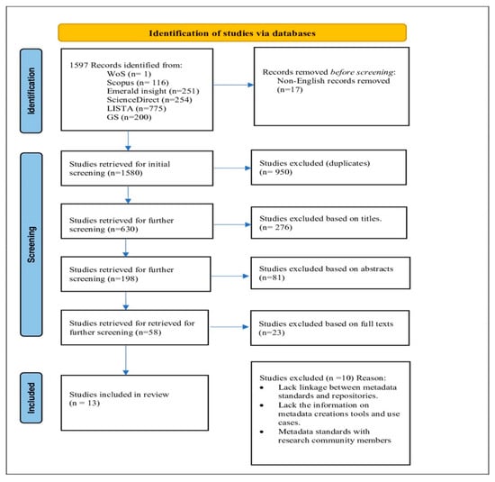 - Sulehri, I.G.; Warraich, N.F. Mapping the metadata challenges in libraries: A systematic review. Libr. Philos. Pract. 2020, 4679. Available online: https://digitalcommons.unl.edu/libphilprac/4679/ (accessed on 6 May 2023).