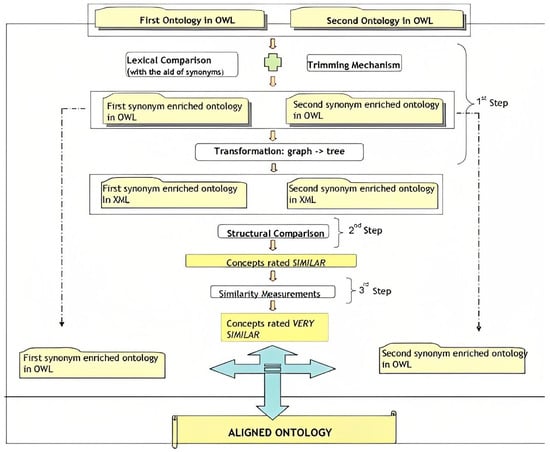 Using machine learning techniques, ontology matching [] can be performed, i.e., determination of correspondences between different ontologies, even concepts within ontologies. In this way, relevant legislation can be recognized between ontologies; ontologies can be related to form a temporary conceptual set, and named entities can be recognized within a legal document, for example, a minister who signs the law or an organization or a geographical entity, etc.