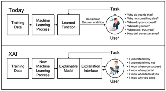 Ridley [] explores the topic of explainable artificial intelligence, which is defined as a variety of strategies, approaches, and procedures that render artificially intelligent systems interpretable and accountable. The two pillars of explainable artificial intelligence are trust and accountability, and Ridley emphasizes user-centered explainability as a prerequisite for an opaque technology. He describes the strategies, approaches, and procedures that research libraries can employ to influence the development, dissemination, and utilization of artificially intelligent systems in ways that are consistent with scholarly and librarianship principles. Turner [] proposes three broad characteristics required for transparency in artificially intelligent systems: data provenance, data repeatability, and data versioning. Forms of explicable artificial intelligence may vary. According to Verheij [], investigate how programming rules and inferences are linked and influence one another can be used to manage the integration of knowledge and data. Until then, the criteria for explainability and the responsibilities of proprietary intelligent systems cannot be effectively managed. Turner [] focuses on semantic association to enhance the explicability of artificially intelligent systems. This method seeks to use explanation techniques to provide a narrative for customized options in order to educate artificially intelligent systems’ decision-making processes on semantic connections.