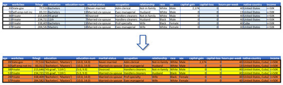 - Becker, B.; Kohavi, R. Adult. UCI Machine Learning Repository. 1996. Available online: https://archive-beta.ics.uci.edu/dataset/2/adult (accessed on 15 May 2023).