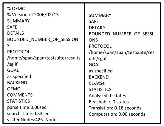 - Armando, A.; Basin, D.; Boichut, Y.; Chevalier, Y.; Compagna, L.; Cuéllar, J.; Drielsma, P.H.; Héam, P.C.; Kouchnarenko, O.; Mantovani, J.; et al. The AVISPA tool for the automated validation of internet security protocols and applications. In Proceedings of the 17th International Conference, CAV 2005, Edinburgh, UK, 6–10 July 2005; pp. 281–285. [Google Scholar]