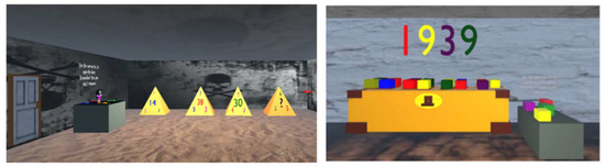 When it starts, the player picks “start game” to get to the first room. To open the door to the next room, the player needs to touch the door with the right answer. If it is right, it turns green. Math puzzles need a key as the answer, while pattern puzzles use a cube, as shown in Figure 1 [7].