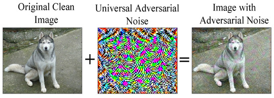 - Moosavi-Dezfooli, S.M.; Fawzi, A.; Fawzi, O.; Frossard, P. Universal Adversarial Perturbations. In Proceedings of the IEEE Conference on Computer Vision and Pattern Recognition (CVPR), Honolulu, HI, USA, 21–26 July 2017. [Google Scholar]