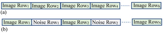 Input image data positioning in memory: (a) regular scenario; (b) under adversarial attack, noise data are interleaved.
