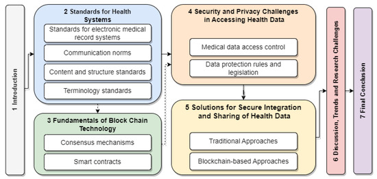 Figure 1 visually depicts the paper’s structure. The solid arrows indicate the recommended sequence of sections for readers already familiar with basic blockchain technology concepts, while the dashed arrows point to a detour through Section 3, which provides an introduction to the fundamentals of blockchain technology.