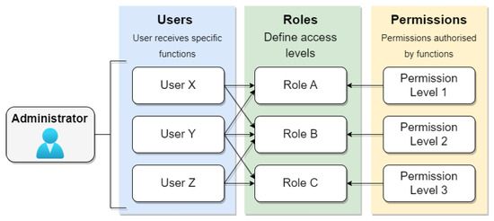 Role-based access control (RBAC) stands as a prominent approach for access control, where each user can be assigned one or more roles, such as administrators, doctors, or patients, each carrying distinct access permission profiles. Administrators typically assign specific roles to users, and each role encompasses varying permissions. Figure 9 illustrates the RBAC access control model, where the system administrator defines roles and permissions. Users are then assigned one or more roles, each associated with specific permission levels in the system. However, systems adopting this model may compromise security due to the intricacies involved in managing groups and users, leading to the potential granting of permissions without genuine necessity. In the context of electronic medical records, the challenge lies in determining the specific situation in which a patient finds themselves at any given time, be it a regular consultation or emergency care. In emergencies, data access must be allowed on an exceptional basis.