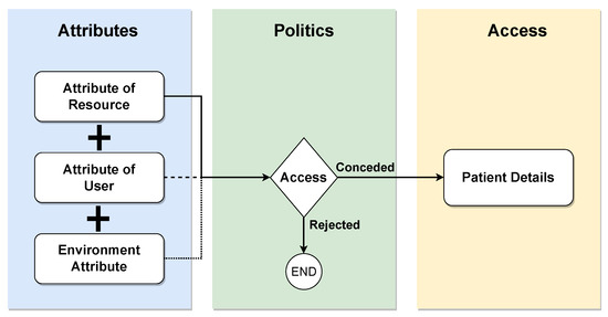 Nevertheless, RBAC needs more flexibility to accommodate unpredictable scenarios, such as emergencies. Consequently, instances may arise where a patient requires care, but the attending doctor lacks the credentials to access the essential data, potentially compromising the quality of care. To address this limitation, some studies propose an emergency role-based access control (E-RBAC) variation. In E-RBAC, emergency roles are defined based on the requesting user’s access level, enabling data querying in emergencies [37]. Despite RBAC being utilized in various access control approaches, its scalability poses challenges, as the indiscriminate increase in roles and policies may lead to management complexities [38].
