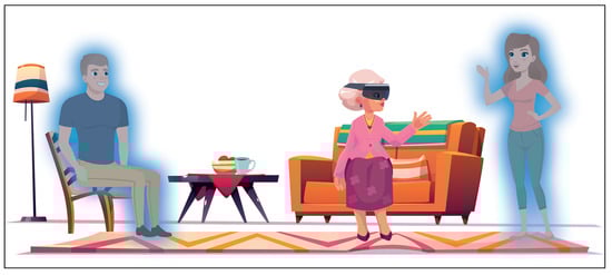 AR technology can be particularly helpful for the older generation who often faces challenges related to their social engagement [3,4]. A socially engaged life is characterized by participating in interpersonal activities and maintaining meaningful connections with other people [5]. However, as children and grandchildren grow up and move out, as social circles become smaller due to the loss of friends and life partners, and as physical and cognitive health declines, it becomes more difficult for older adults to maintain the same level of social engagement [6]. In situations where personal visits become problematic, communicating with an avatar of a real person in AR can be a viable alternative [7]. By conveying and enhancing social signals, AR can resemble typical human–human interpersonal communication, which is not always possible to achieve with existing communication tools such as video conferencing [8,9,10]. As a result, AR systems hold promise for providing vivid communication experiences and bolstering communication quality across distances, thereby fostering the social engagement of older adults [11].
