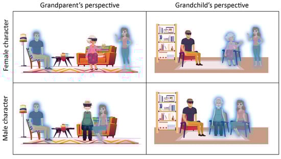 The first part of the scenario showed communication from the perspective of a grandparent, and the second part showed communication from the perspective of a grandchild. Illustrating the perspectives of both communication partners was necessary to provide interviewees with detailed information about how such AR-based communication takes place.