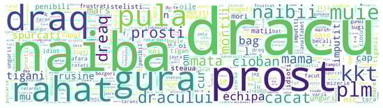In the context of Romanian social media, Meza et al. [8] highlighted that the most-prevalent target groups for offensive messages are welfare recipients or poor people, followed by the Roma and Hungarian communities. This finding supported the 2018 study [9] by the Elie Wiesel National Institute for Studying the Holocaust in Romania. They analyzed Facebook posts and underlined that hate speech is not limited to one specific minority group. Still, the same users target several groups based on race, nationality, religion, or sexual orientation. This behavior was aggravated by the COVID-19 context in the years 2020–2022. In the 2020 report [10], ActiveWatch pointed out that, apart from the Roma population, the Romanian Diaspora became a target of online hate speech. A recent paper by Manolescu and Çöltekin [11] introduced a Romanian offensive language corpus. This corpus provides a detailed categorization of offensive language into targeted and untargeted offenses. Höfels et al. [12] presented CoRoSeOf, a large social media corpus of the Romanian language annotated for sexist and offensive language. Their work encompassed a detailed account of the annotation process and the preliminary analyses, as well as a baseline classification for sexism detection using SVM-based models.